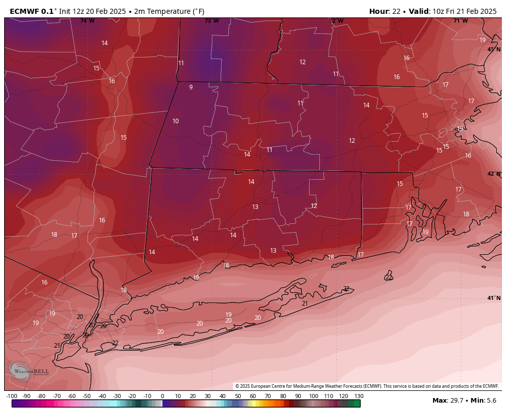 Temperatures will be very cold during this event (between 19 and 23 degrees) so any snow that falls will stick readily. Temperatures drop even further into Friday morning – with another morning 10 to 15 degrees above for many. It’s been a cold enough winter – we just havn’t seen “the big one” in terms of snowfall!
