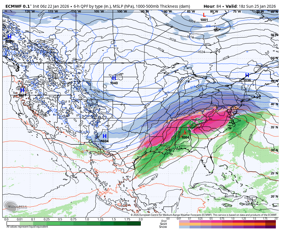 The latest European model introduces the possibility of some sleet or freezing rain mixing in Sunday night. However, given:
