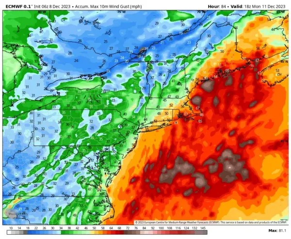 All attention in the Weather Center has turned to a robust and potent storm system that will be moving through Sunday afternoon to Monday. The likelihood of rain increases as the afternoon goes on Sunday, with rain and wind strongest for about a 12-hour period 7PM Sunday evening through 7AM Monday morning. Models are in good agreement with heavy rainfall during this period, and the trend the last 24 hours has been for a stronger system with more precipitation. Winds will be strongest under a screaming low level jet that looks to set of over Eastern parts of the forecast region. Given the robust nature of this event, please see detailed impact summary below. Rainfall: Increased forecast to widespread 2.0 to 3.0 inches of rain, with locally higher amounts up to 3.5 inches possible, especially in the Hudson Valley and Western Connecticut. Wind:  Based on current forecast, peak wind gusts 40 mph to 50 mph in the Hudson Valley and Western CT; 45 mph to 55 mph in Central and Eastern CT, and 50 mph to 65 mph in coastal New London County and Rhode Island. Power Outages: Isolated to scattered power outages are possible in the Hudson Valley and Western Connecticut, with scattered to numerous outages in Central and Eastern Connecticut. Numerous to even widespread power outages are possible further East in Rhode Island and Eastern Mass. Marine: For Long Island Sound, coastal flooding is possible up to a level of 1.0 to 2.0 feet, particularly in vulnerable areas. A Gale Warning will likely be needed due to the magnitude of wind and surf.