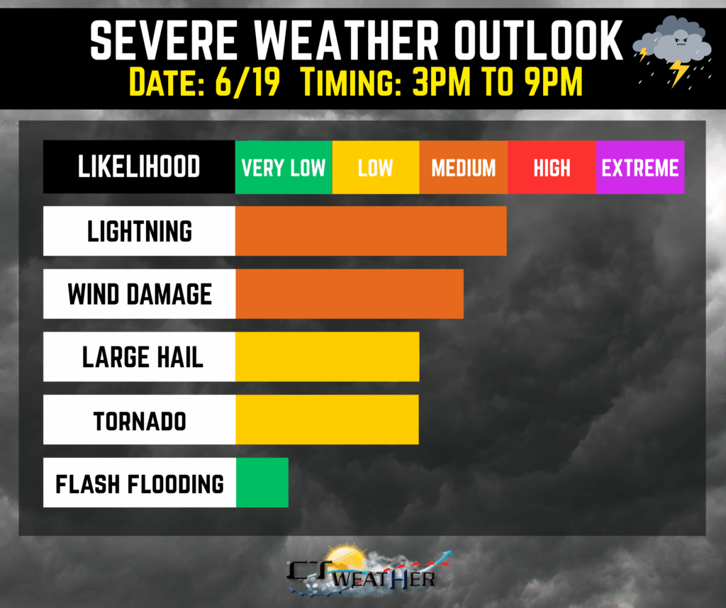 Models tonight continue to indicate sufficient instability (~2000j/kg) to go along with sufficient wind shear on Thursday, pointing to the potential for strong to severe storms to work in. Given the environment, damaging wind gusts are the primary concern, with a lower risk for hail and even the potential for isolated tornadoes as the SPC has placed the much of the area in a 2% tornado risk. Most models now show storms developing mid to late afternoon along a pre-frontal trough, so decided to keep the timing window for storms 3PM to 9PM. Storms are expected to weaken as they move east into Connecticut and Rhode Island after sunset.