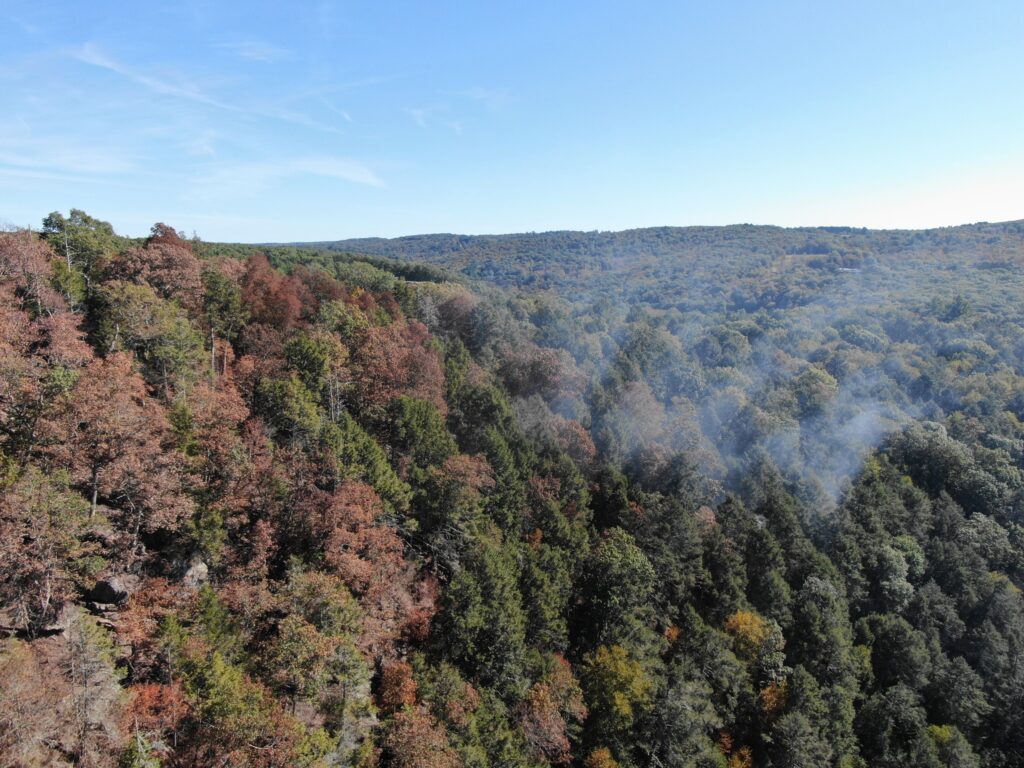 Crews have focused their efforts on the east and southeast flanks of the fire, where back burns have been conducted to widen control lines. On the west side, the fire has held steady, and a sprinkler system has been installed at the ridge top for added protection. The entire Steep Rock Preserve remains closed to visitors until further notice.