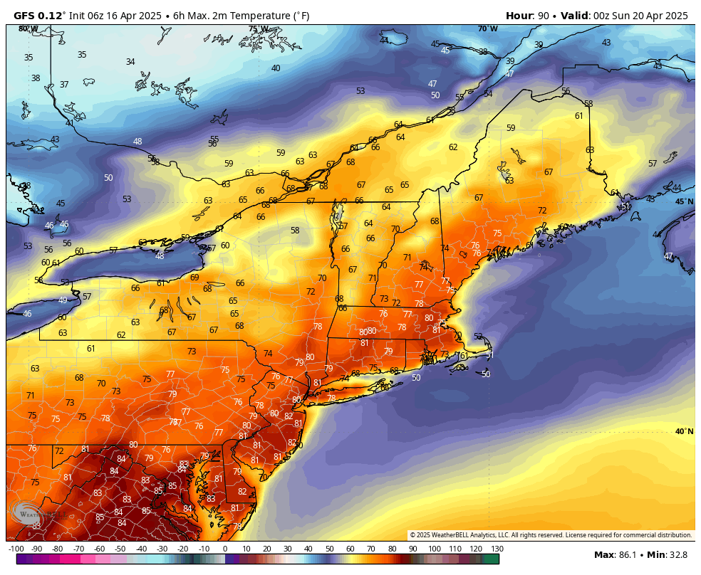 The holiday weekend will be warm, with temperatures in the 70s for many on Saturday. It may even approach 80 degrees across the interior urban corridor and CT River Valley. There is a slight chance of a shower or a storm Saturday afternoon, but nothing widespread or severe is expected. Sunday looks very pleasant with highs in the mid to upper 60s and abundant sunshine.