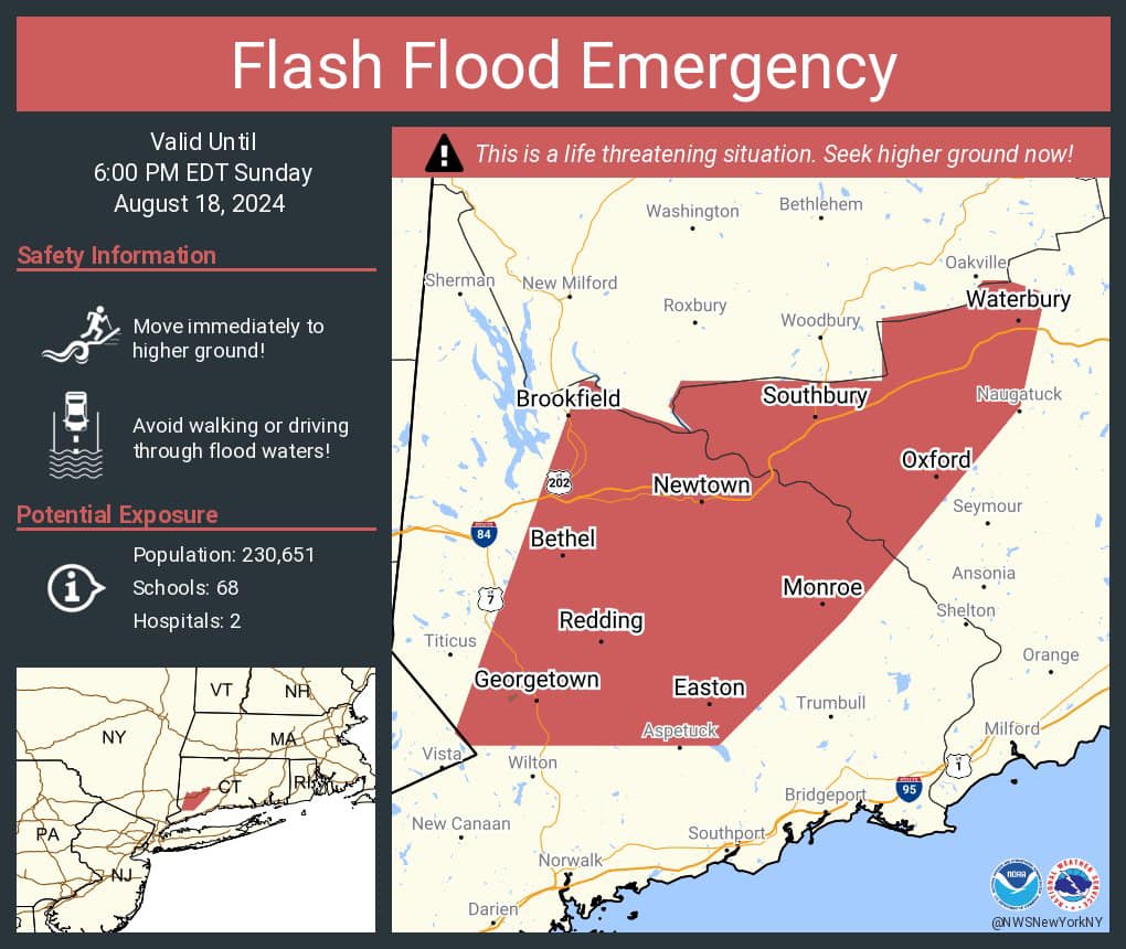 The only other Flash Flood Emergency ever issued in Connecticut was during the remnants of Ida in 2021. That Storm also resulted in fatalities. A lot of people educate on Watch vs Warning, but you don’t hear as much about the perhaps most important “Emergency” alert. Here is an example of the alert that was sent Sunday.