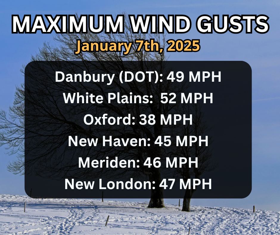 If you stepped outside at all in New England the last couple of days, you probably noticed the cold, and a moment later the wind. Winds gusted 40 to 50 mph over much of Connecticut on Tuesday, resulting in single digit wind chills and even isolated tree and power problems. The maximum wind gusts throughout our area on Tuesday can be seen below: