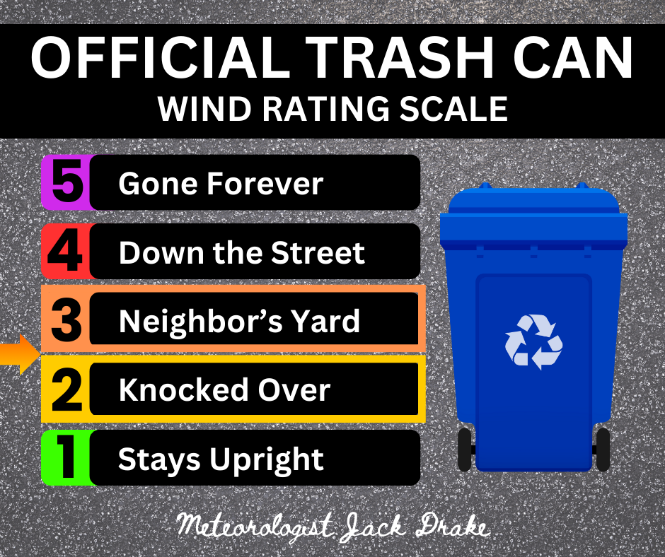 I’m between a 2 and a 3 on the trash can scale today. Thankfully winds do diminish this evening.